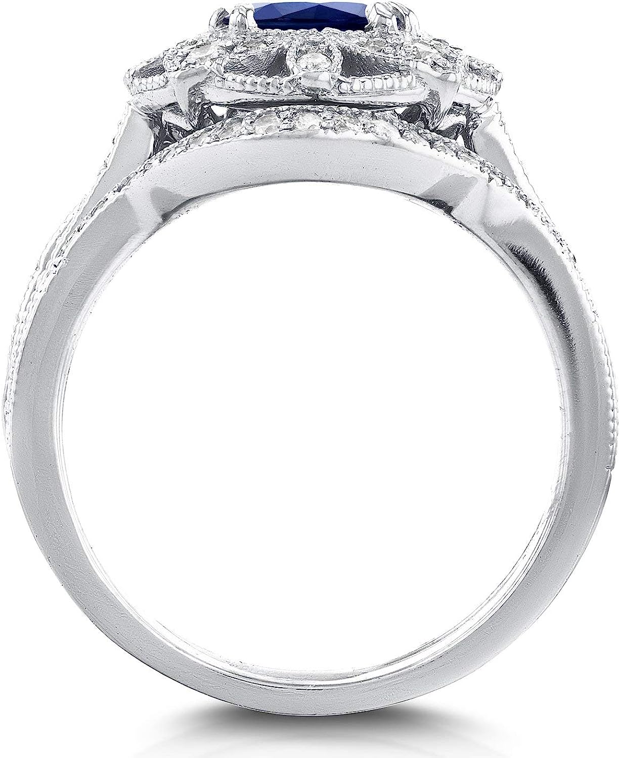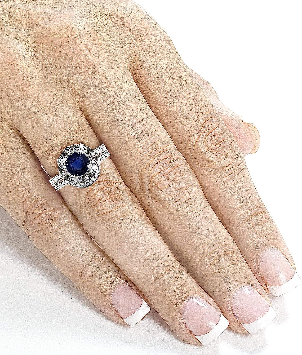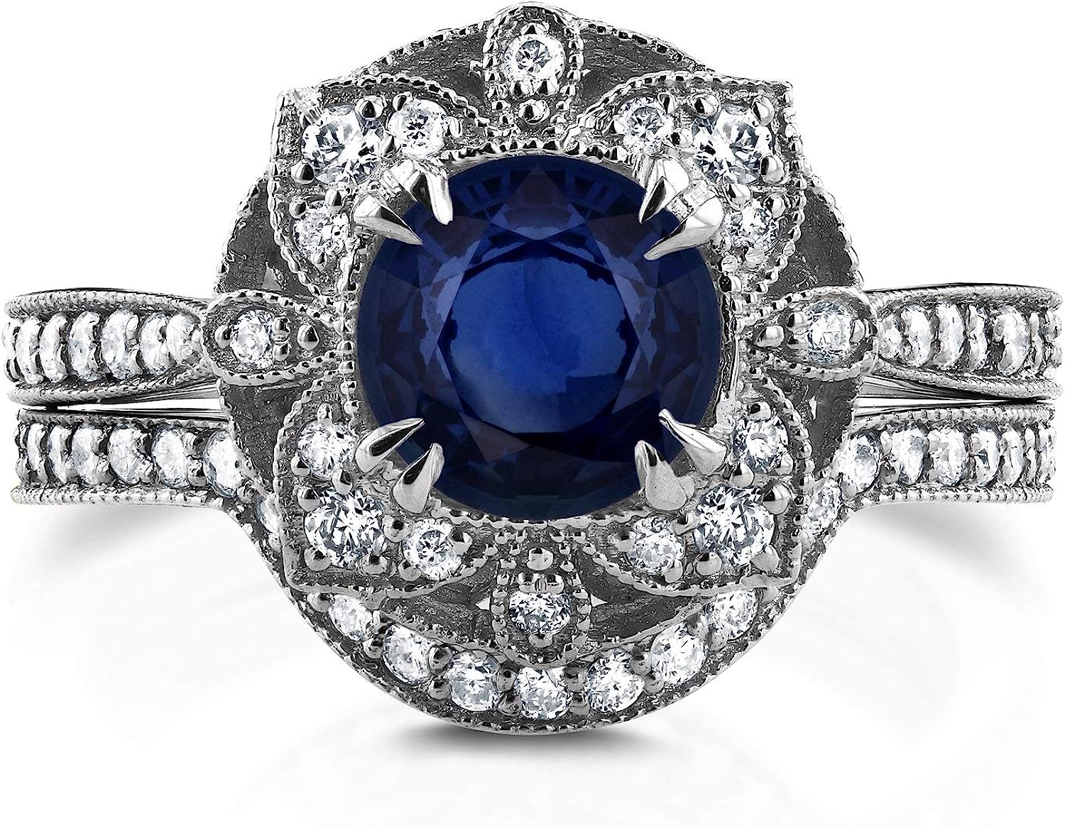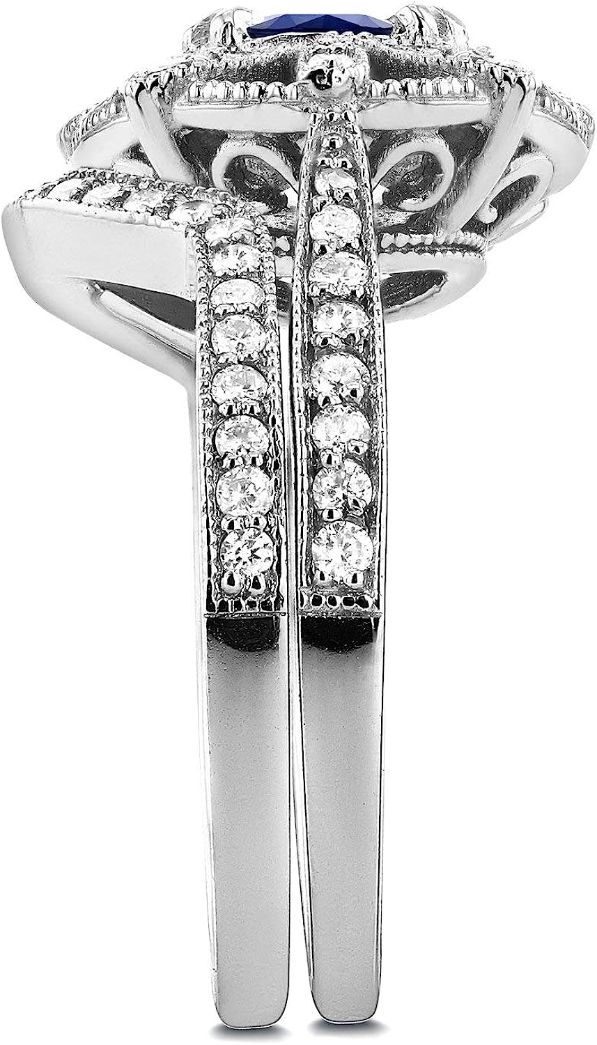 Kobelli Antique Style Floral Round Sapphire and Diamond Bridal Set 1 3/4 CTW in 14k White Gold