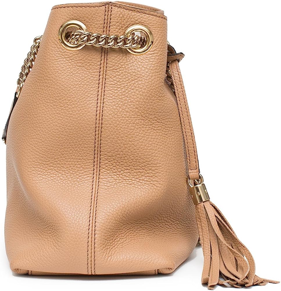 Gucci Camelia Camel Pebbled Leather Soho Shoulder Hand Bag Tassel
