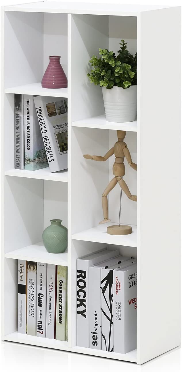 Furinno Luder Bookcase / Book / Storage , 7-Cube, White