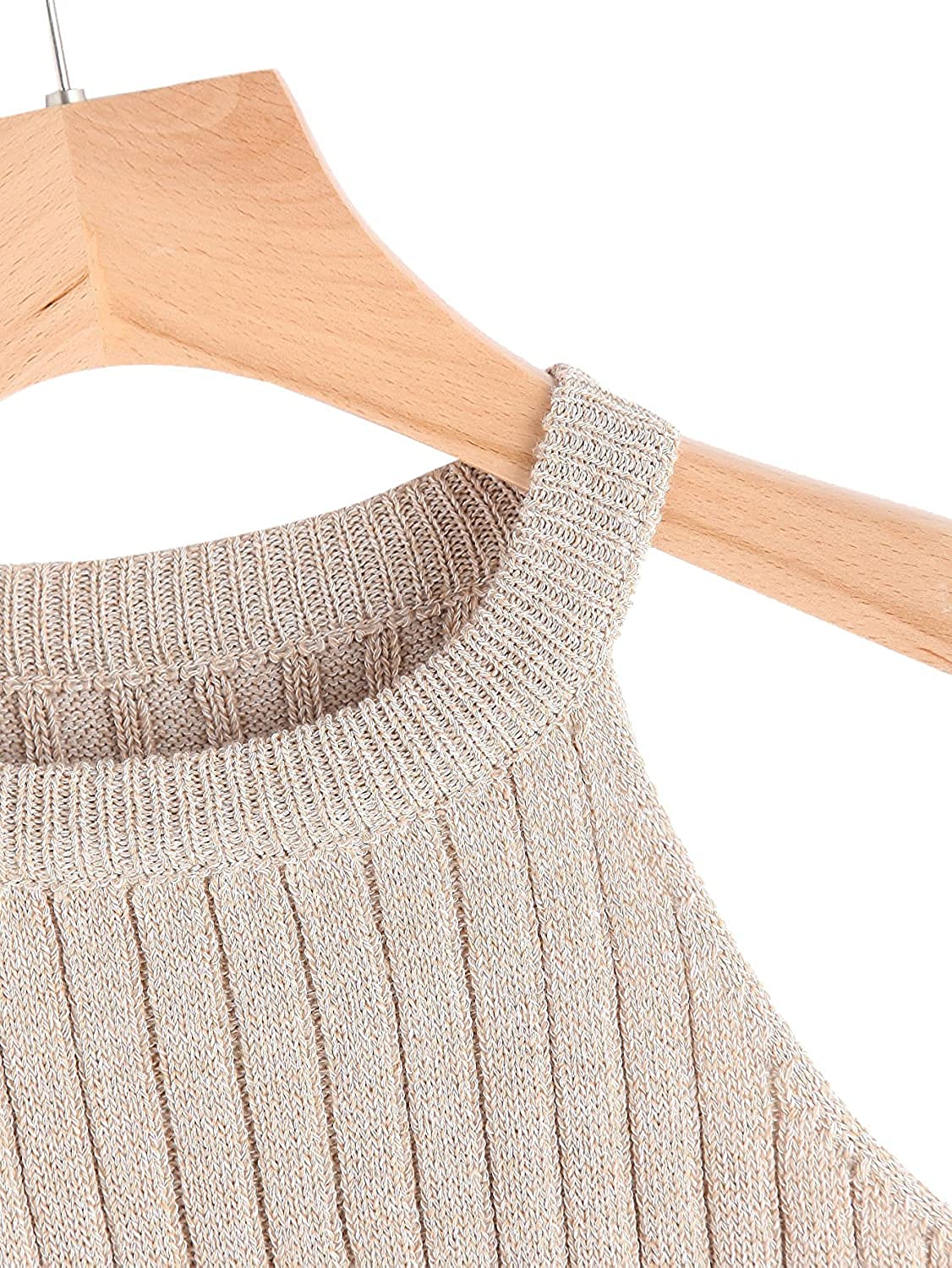 Halter knit top for women , womens basic sweater, featuring with sleeveless, high neck/halter neck and ribbed design.