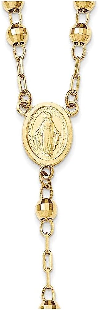 PREMIUM QUALITY - 14k Yellow Gold Diamond cut Y Virgin Mary Beaded Rosary Cross Pendant Necklace for Women Elegantly Crafted in Highest Quality for Luxurious Shine and Feel