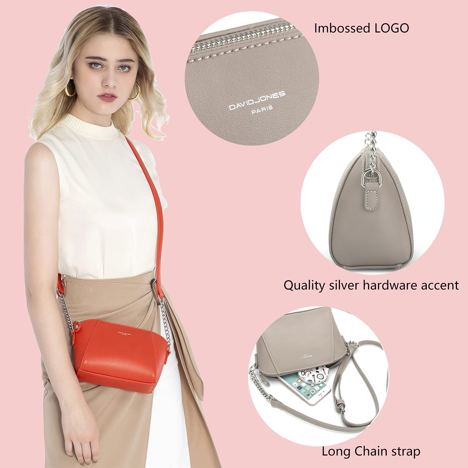 DAVIDJONES Small Crossbody Bag for Women, Vegan Leather Lightweight Chain Shoulder Handbag Cell Phone Wallet Purses