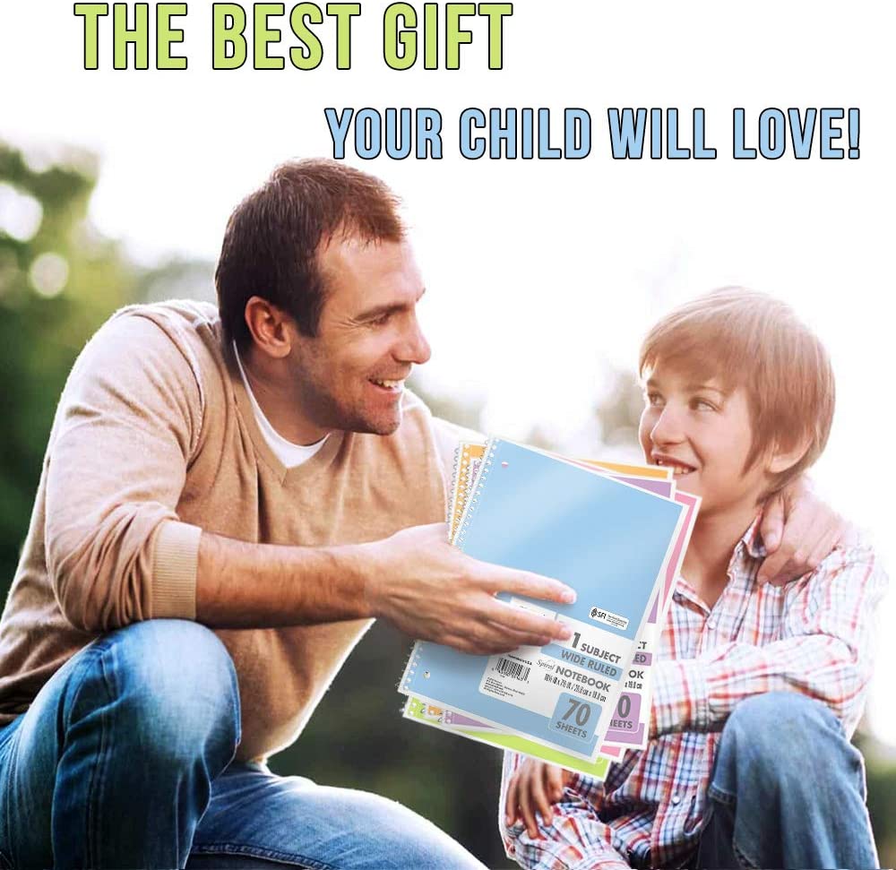 Each notebook contains 70 sheets of Wide ruled paper perfect for a quarter, semester or special project.