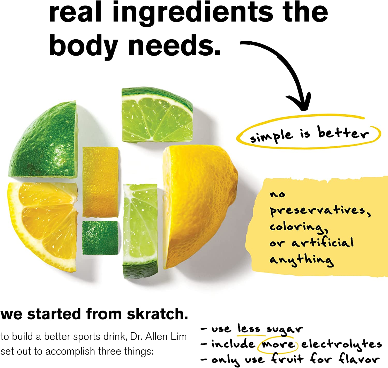 • SAFELY HYDRATE WITHOUT THE FLUFF: We reimagined sports drinks, stripping down to only the necessary ingredients. For the elite athlete and everyday performer, simple is better for anyone who works hard and sweats. You don't sweat Red Dye #40. Why drink it?