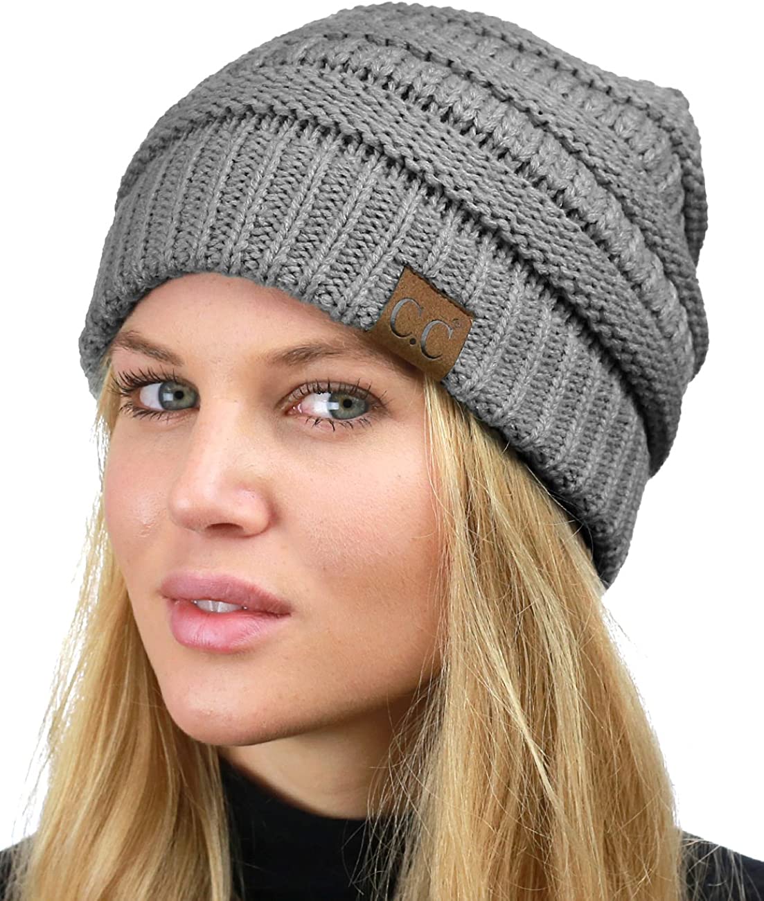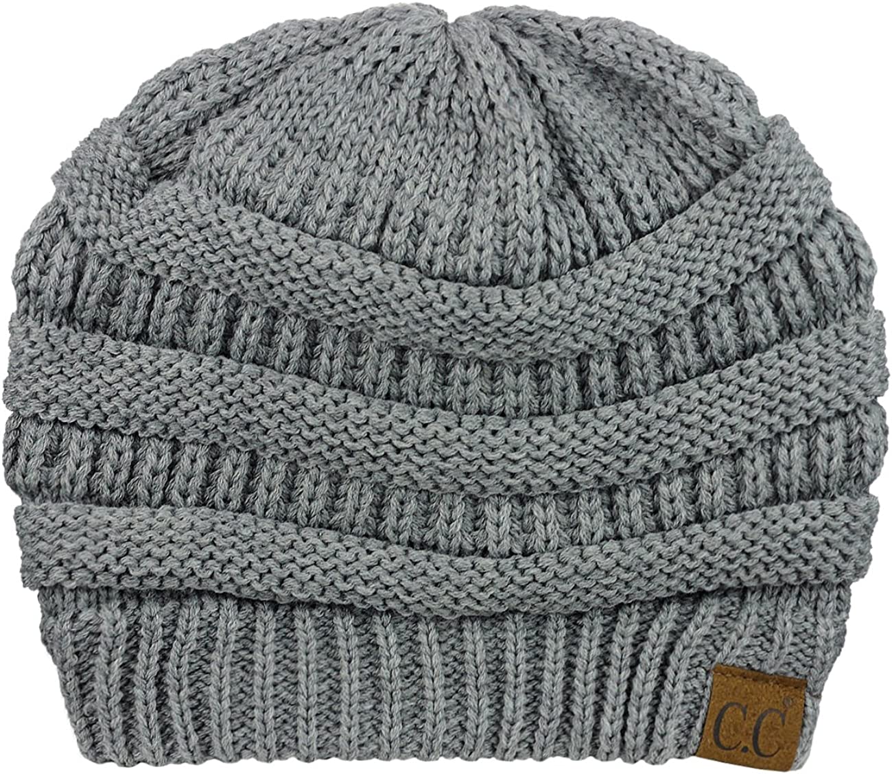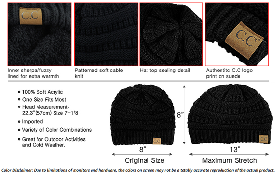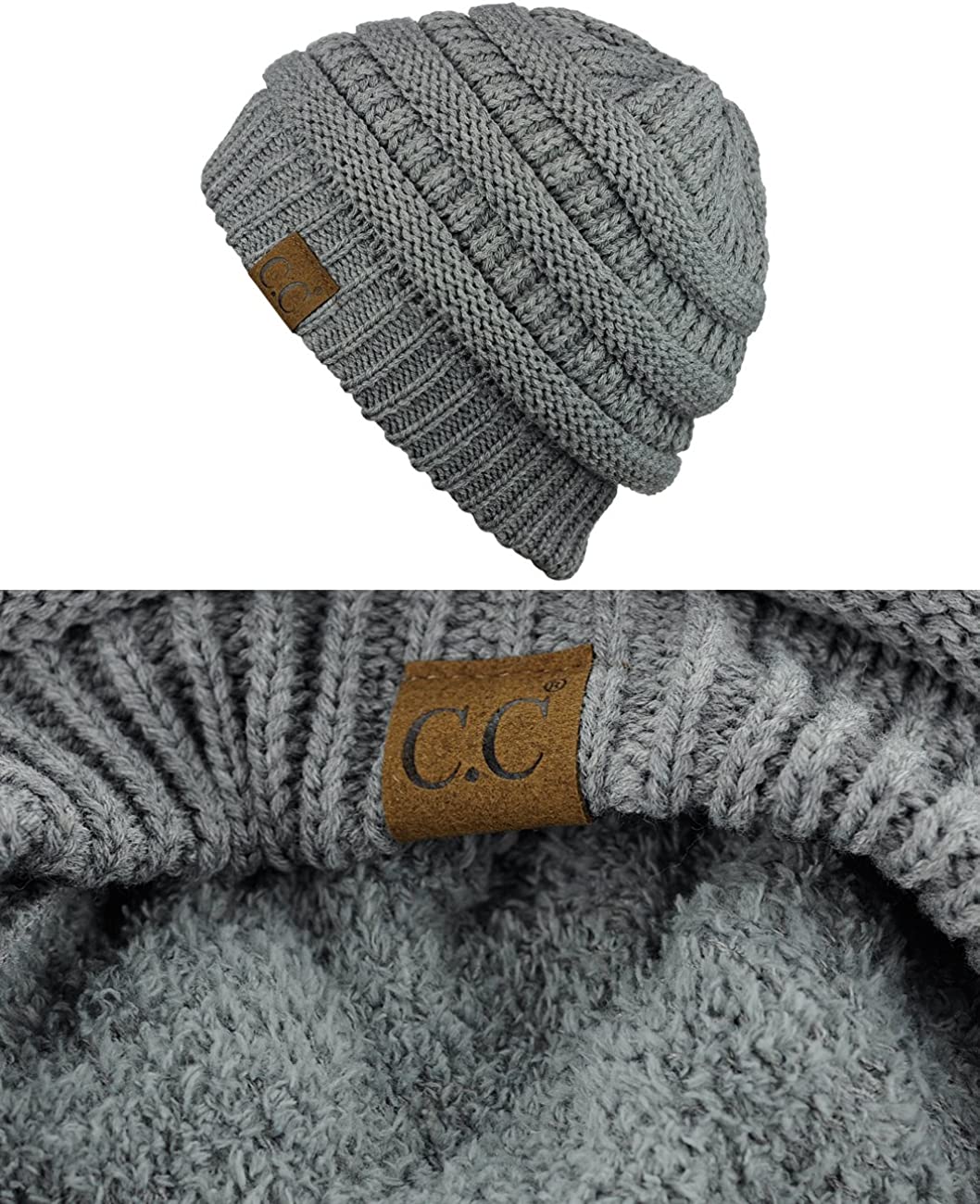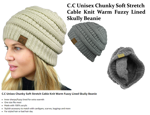 C.C Unisex Chunky Soft Stretch Cable Knit Warm Fuzzy Lined Skully Beanie