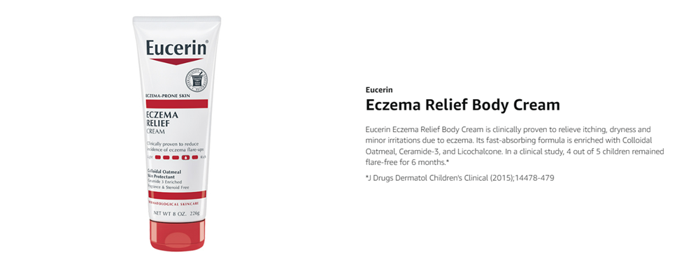 • Great For: Eucerin Eczema Relief Body Cream skin care for eczema is appropriate for use on adults, children and babies 3 months and older