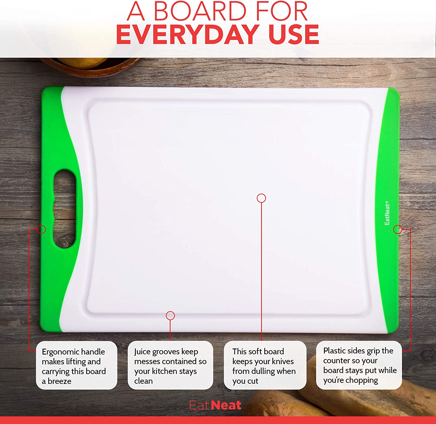 ERGONOMIC SOFT-GRIP HANDLES: For those long days of cooking, an ergonomically designed handle is crucial. That's why this knife and cutting board set includes soft-grip handles. They cradle your hands so you can create a delicious meal with ease.