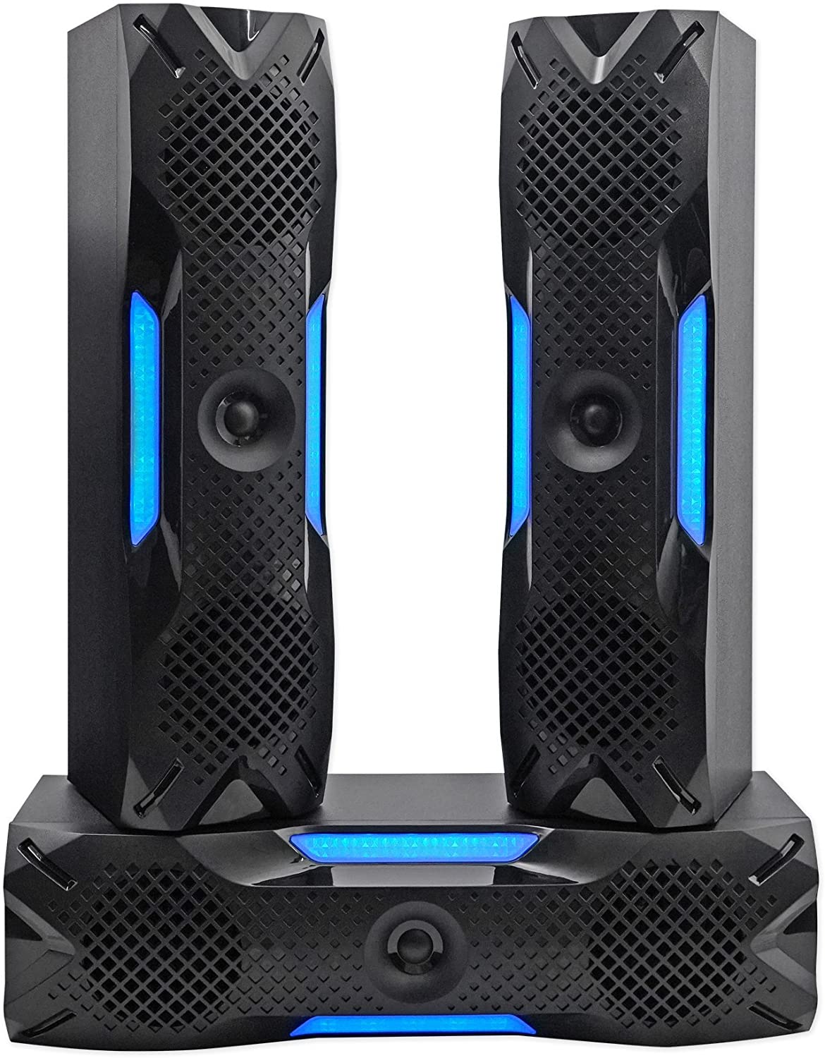 - Optical input to connect to your TV. FM Antenna Input. Full Function Remote. The Subwoofer unit has 4 LED lighting modes: (blink to the beat, solid on, spectrum EQ analyzer, off) and selectable with 7 colors or multi-color mode.