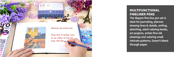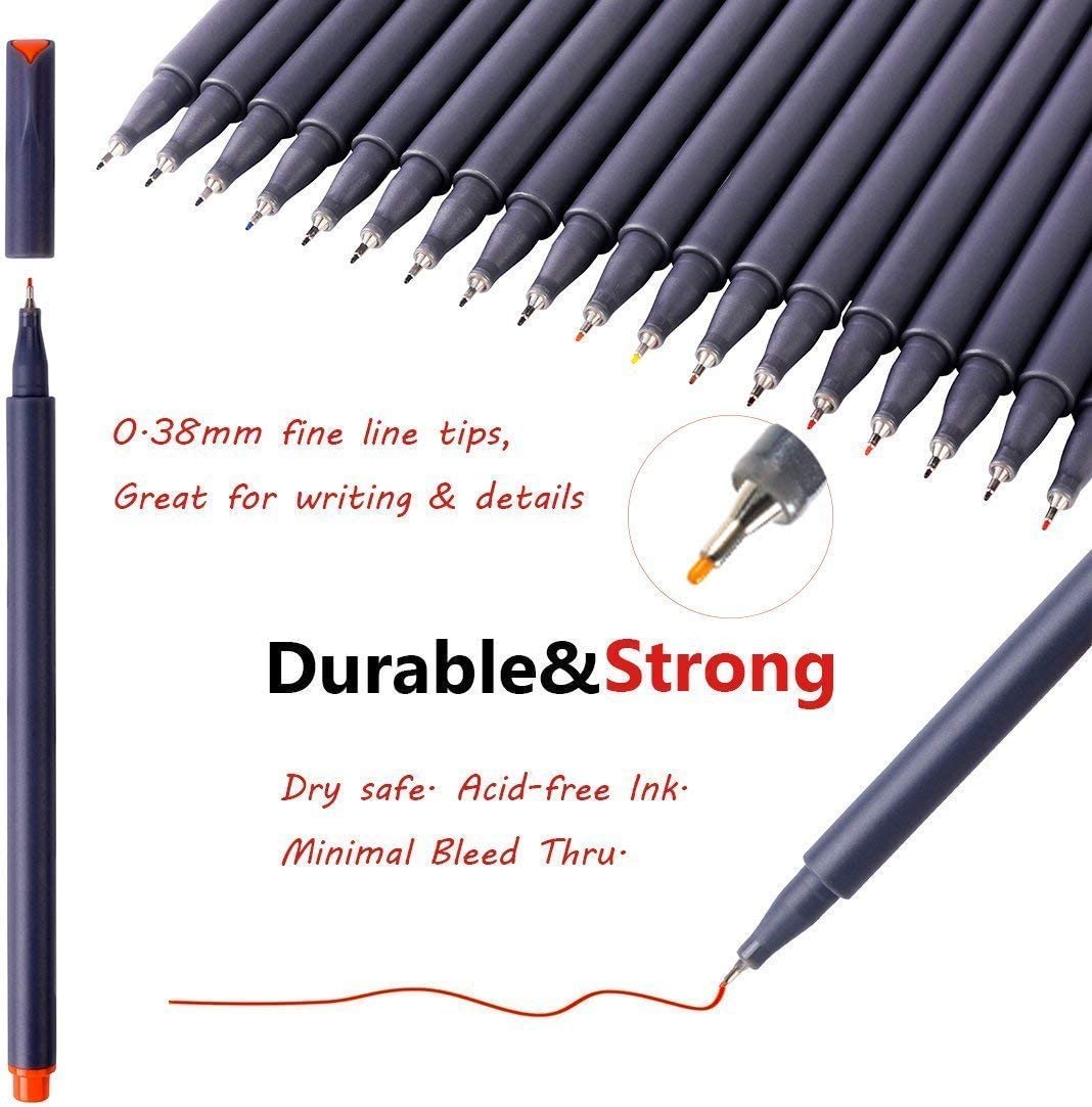Lets you express yourself with true style and color. Available in 18 colors with an ultra fine tip. The iBayam fine liner marker pen set provides bold and expressive lines and is great for editing documents and papers. This writing instrument features point guard technology to protect the felt tip, as well as a water-based ink that doesn't bleed through paper.