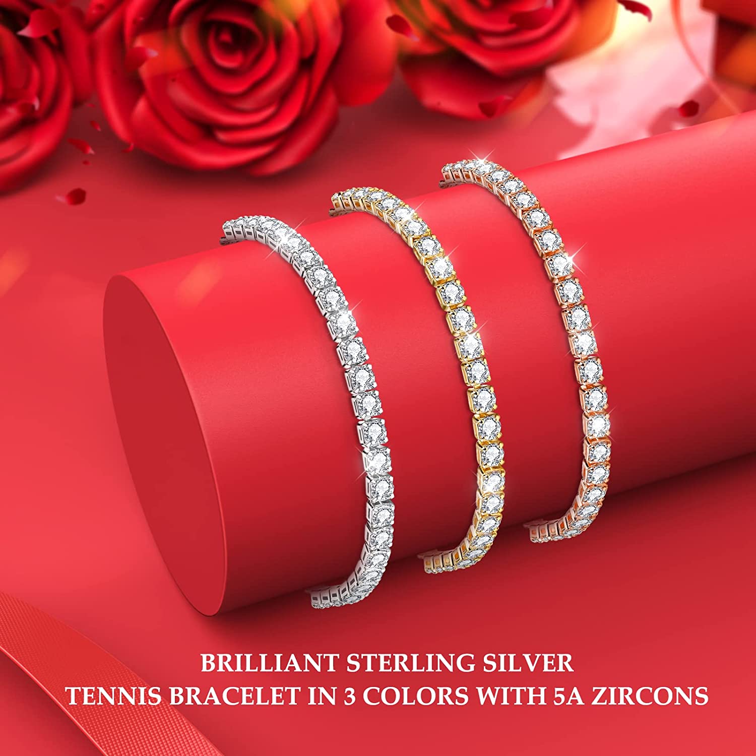 • ?[ Shining 5A Cubic Zircon] We carefully selected the top 5A grade brilliant zircon (3MM, D Color, VVS Clarity, More Purity than others). Under the Heart & Arrow cutting effect, every simulated diamond restores item natural beauty and extremely brilliance. We use four-claw inlay technology. The shiny zircon is firmly embedded in the silver bracelet, reducing the risk of zircon falling.