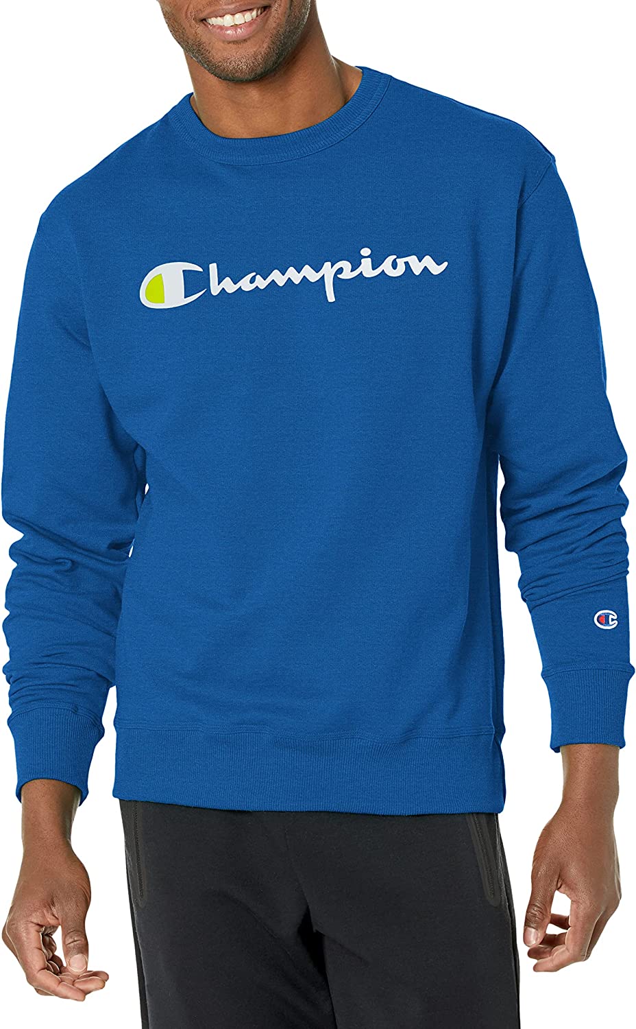 Champion Men's Powerblend Fleece Crew Sweatshirt for Men, Crewneck, Script (Reg. or Big & Tall)