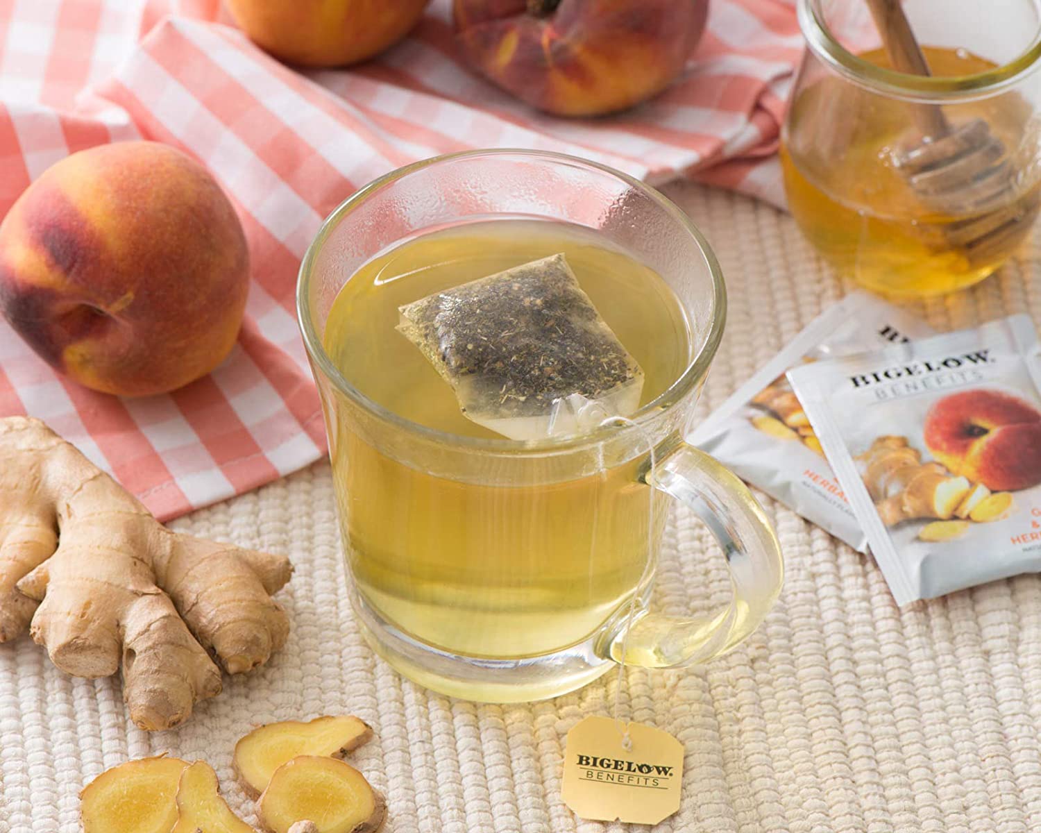 Tummy Soothing Herbal Tea: This beneficial herbal tea is a unique blend of spicy ginger and soothing peppermint blended with stomach calming fennel and licorice root with sweet peach