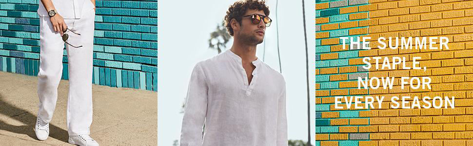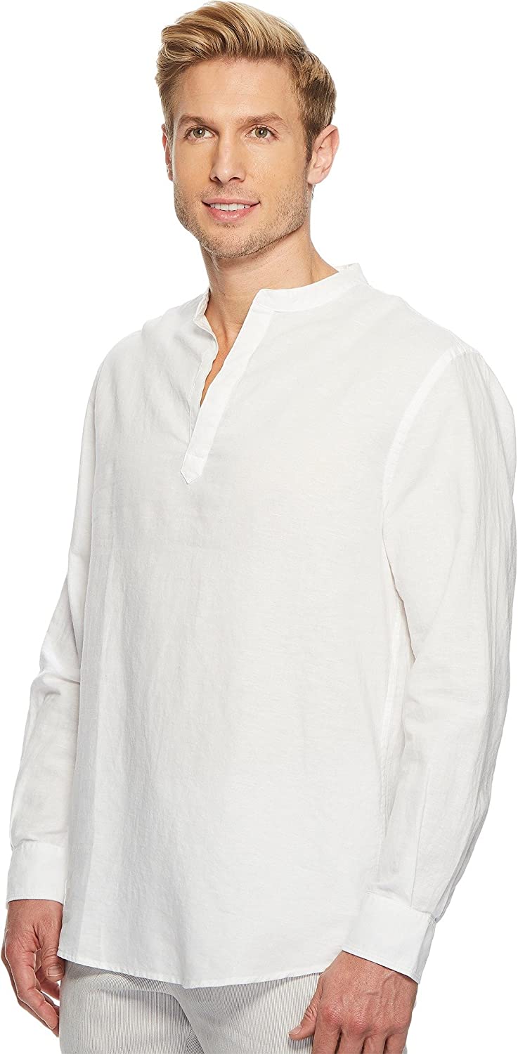 Fashion should be fun. And this lightweight, breathable, linen shirt is a must-have in your spring and summer wardrobe. This Perry Ellis long sleeve v-neck shirt reflects the classic style of the casual man, breathing fresh air into a timeless top. Linen's features allow air to circulate through the shirt to create maximum breathability and enhanced comfort.