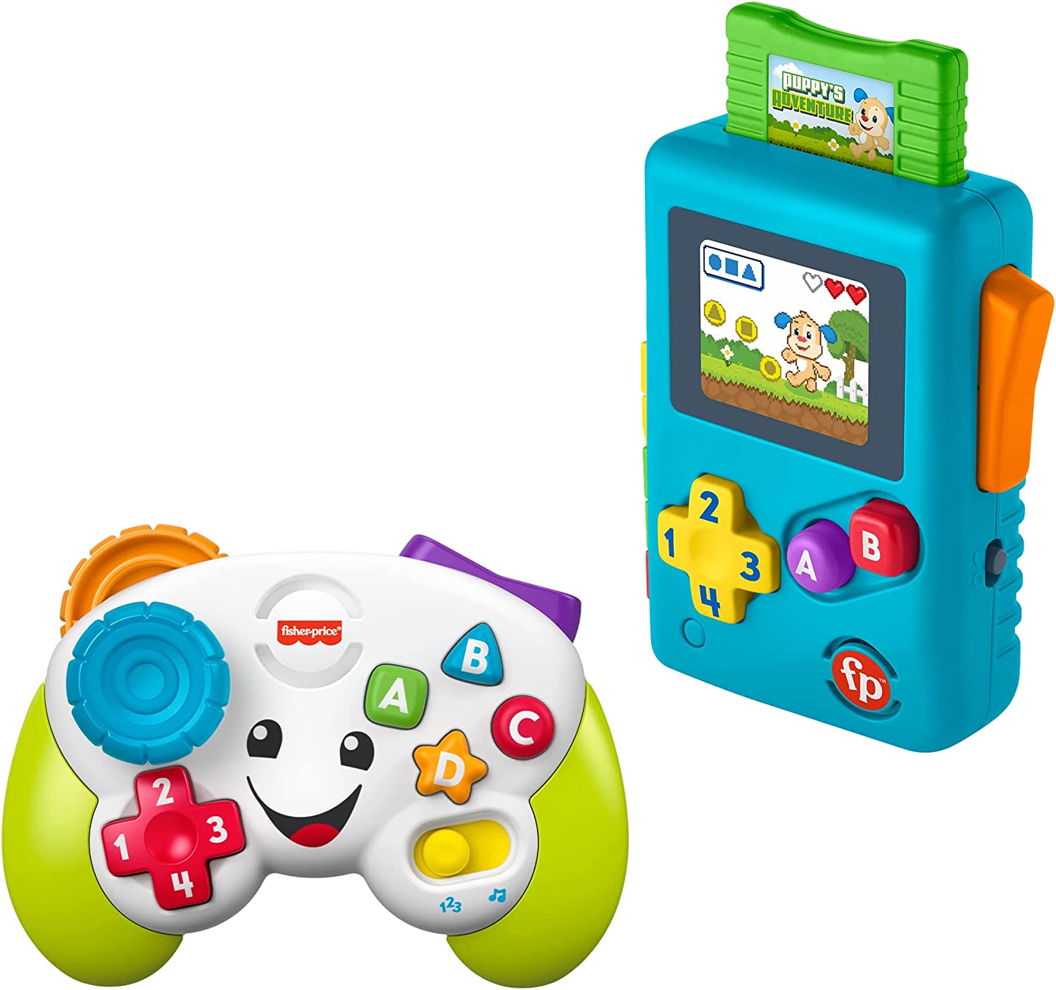 Fisher-Price Pretend Video Game Controller Baby Toy with Music Lights and Learning Songs, Fine Motor Toy