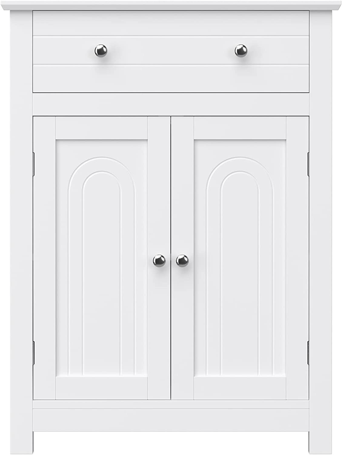 VASAGLE Bathroom Storage Cabinet Free Standing, with Drawer and Adjustable Shelf, Kitchen Cupboard, Wooden Entryway Storage Cabinet, 23.6 x 11.8 x 31.5 Inches, White UBBC61WT