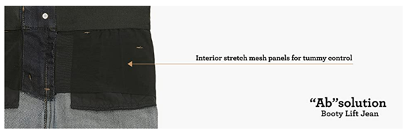 - Democracy’s signature “Ab”solution jean uses innovative construction that incorporates super-stretch denim, slimming panels, a hidden inner elastic waistband, mesh panels, signature curved back yoke, and strategically placed pockets