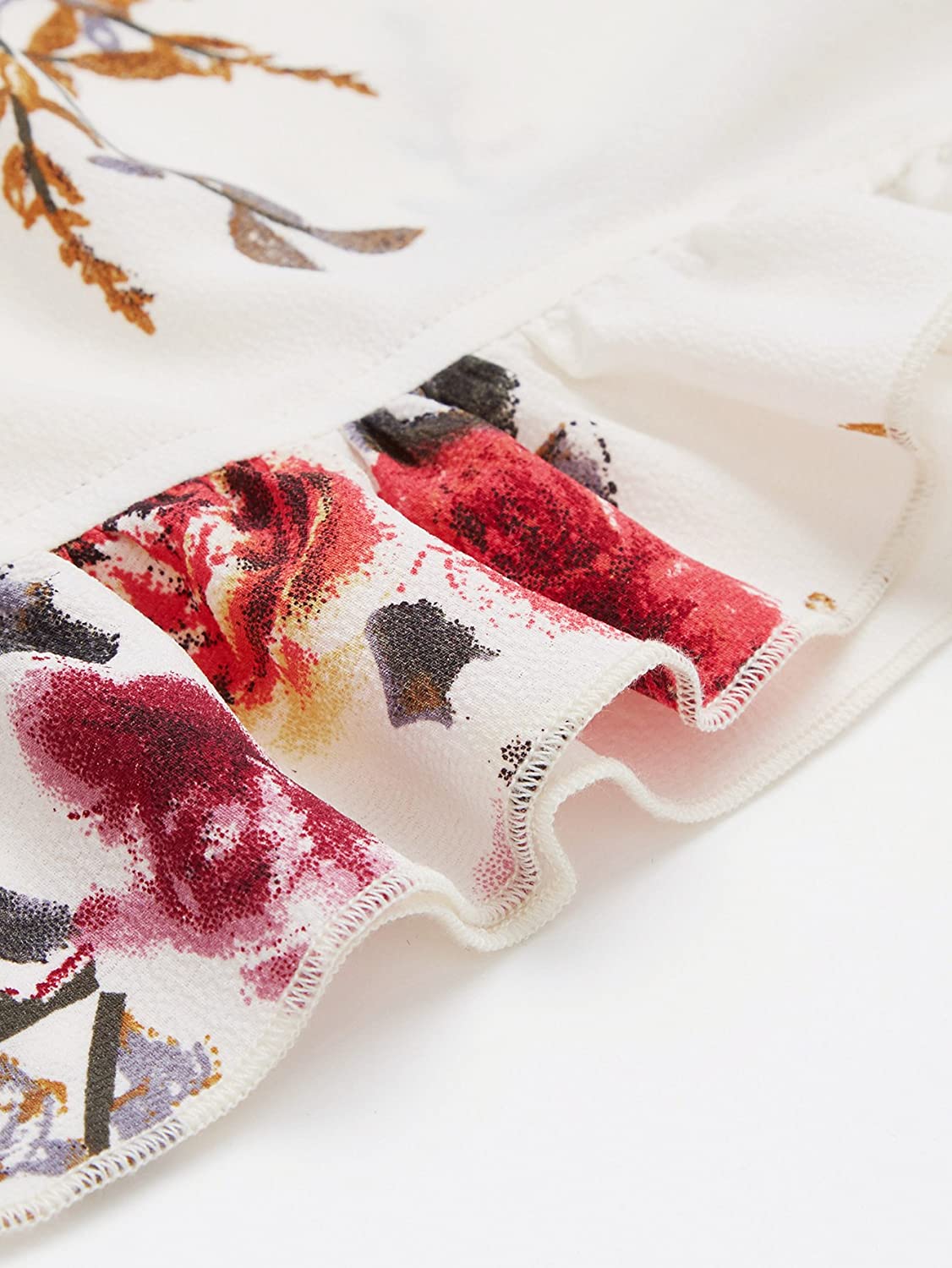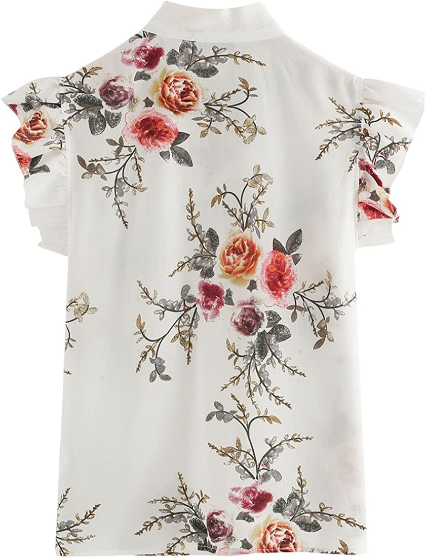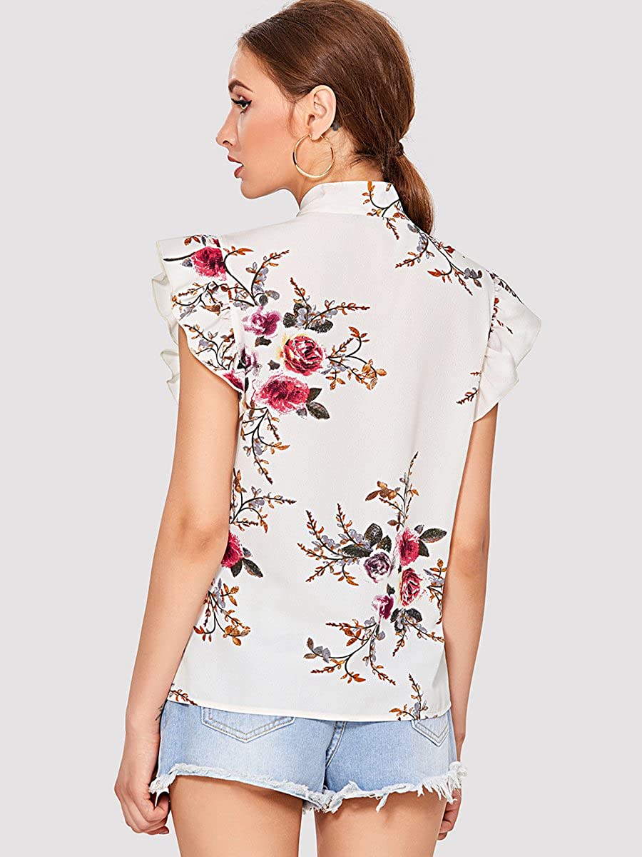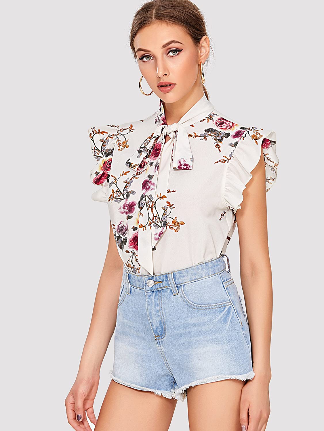 Romwe Women's Casual Short Sleeve Ruffle Trim Bow Tie Blouse Top Shirts