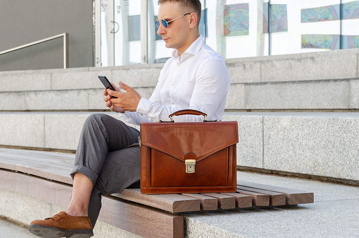 - ✔️ BAG THAT MAKES A STATEMENT – did you know you have only 7 seconds to make a first impression? And every detail matters - this eye-catching leather briefcase will help you to turn heads and catch the COMPLIMENTS, make you feel more confident and good-looking