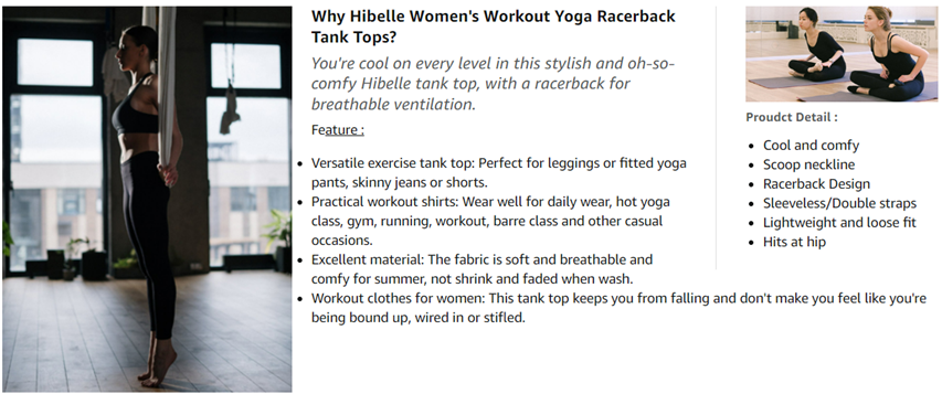 - Item model number : Yoga Tank HB009BK12