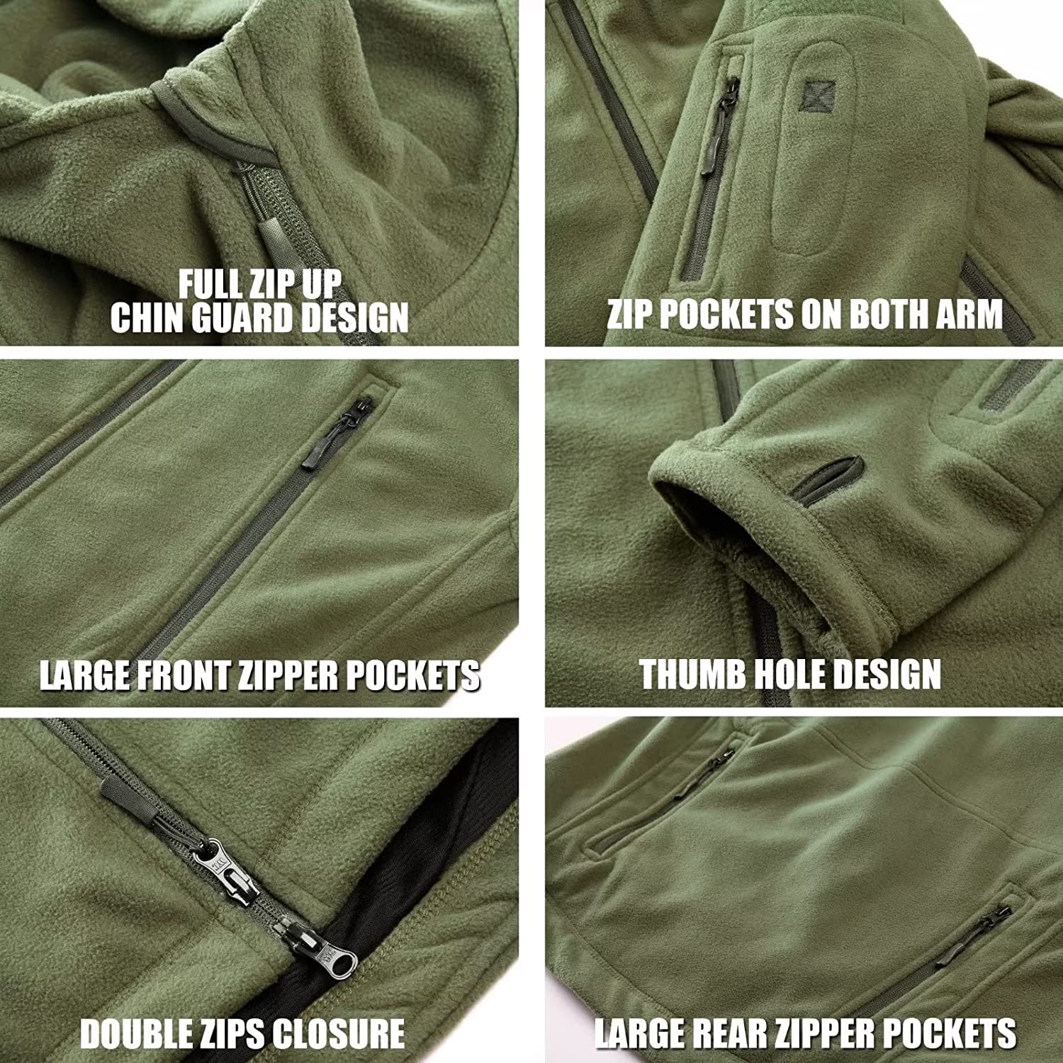 MAGCOMSEN Men's Hoodie Fleece Jacket 6 Zip-Pockets Warm Winter Jacket Military Tactical Jacket