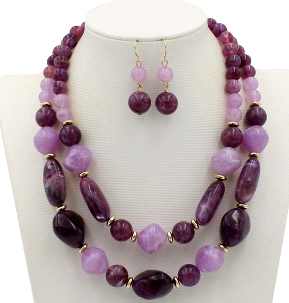 Shineland 2 Layer Jelly Colored Acrylic Handmade Statement Strand Chunky Beaded Fashion Jewelry