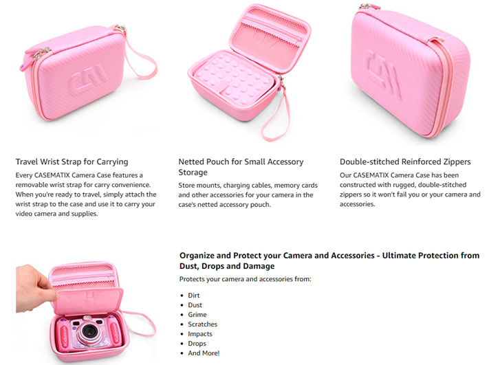 Protective Hard Shell Outer: The CASEMATIX Pink Toy Camera Case features a protective EVA exterior and fits multiple popular toy cameras!