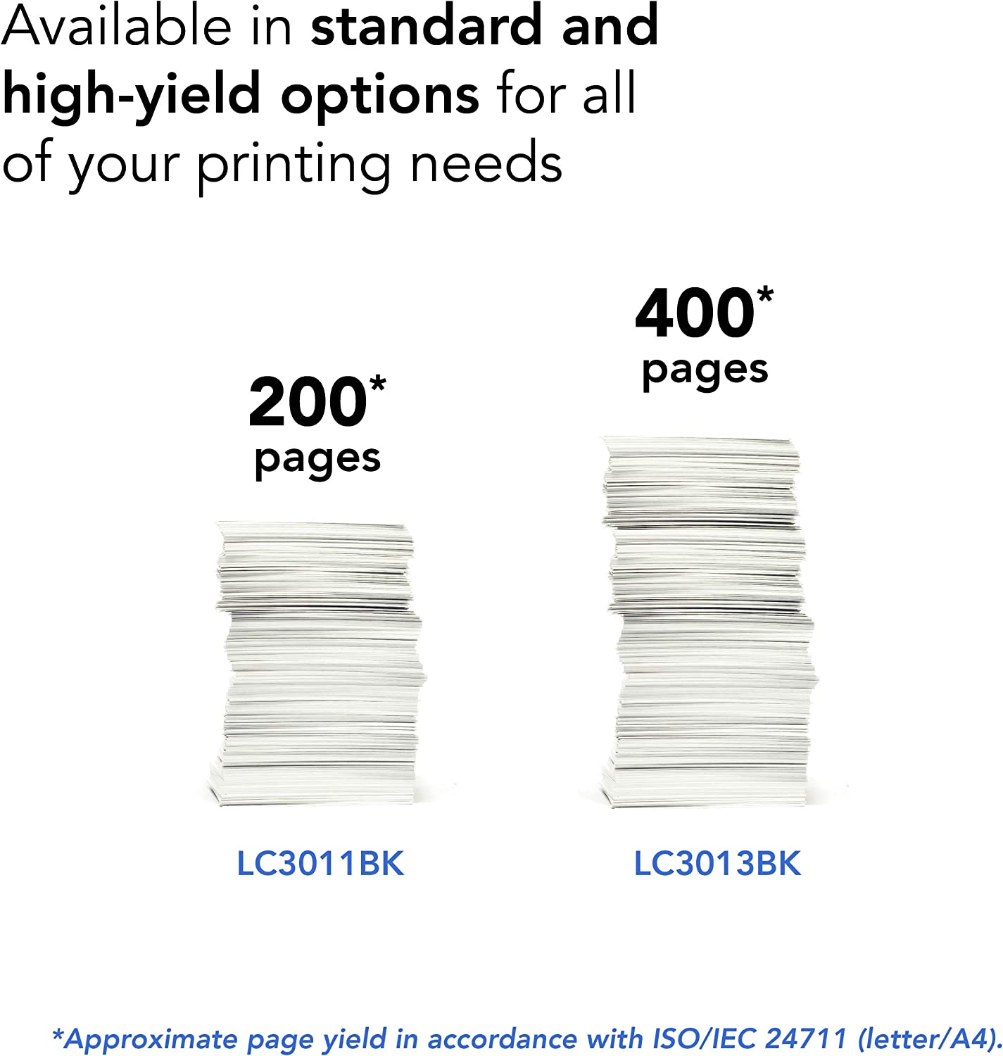 Brother Printer High Yield Ink Cartridge Page Up To 400 Pages Black (LC3013BK), Standard
