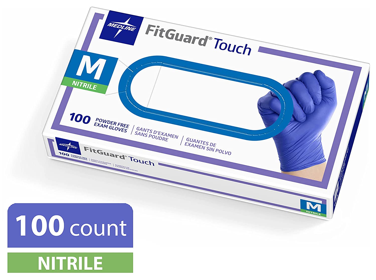 Medline FitGuard Touch Nitrile Exam Gloves, Disposable, Powder-Free, Cobalt Blue, Medium, Box of 100