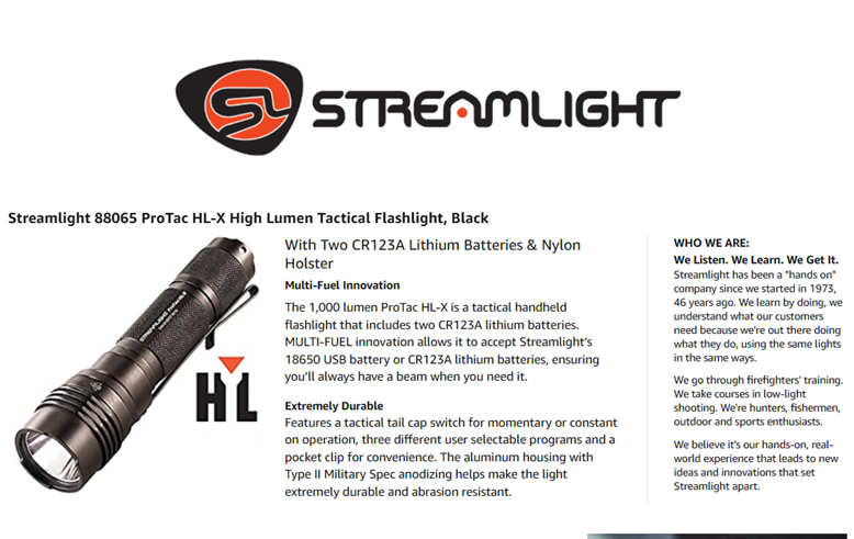 | Included Components | ProTac HL-X, Batteries, Holster, User Guide |