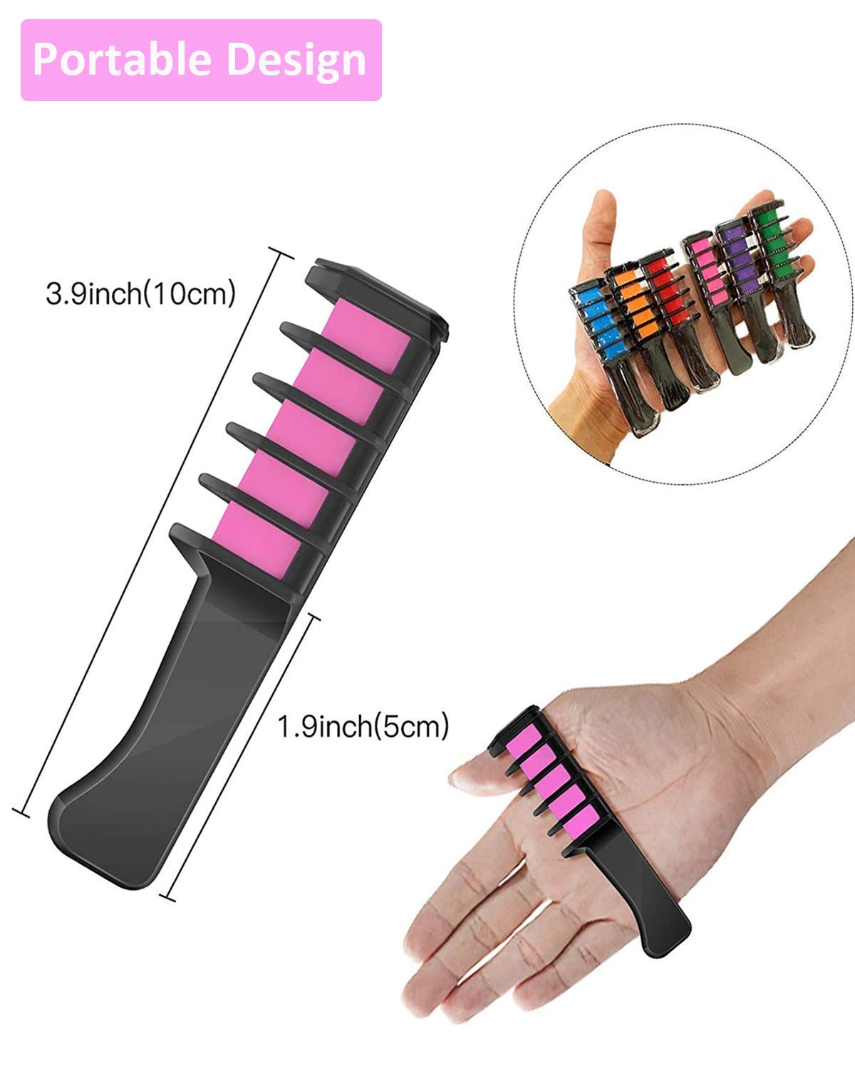 【6 Vibrant Colour】Red, Blue, Green, Orange, Purple, Pink -6 Various colors all mix and blend into one another creating so many different looks; ???? ??Z? ?????? --The length of the hair color comb is about 3.99”(10cm)