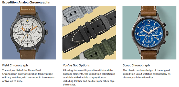 This men's Timex Expedition watch is made from stainless steel and is powered by a quartz movement. It is fastened with a leather strap. The watch also has a date function. Everything you need and nothing you don't.