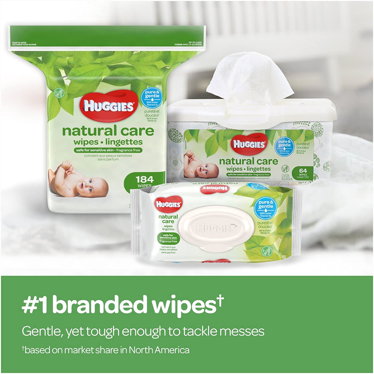 - Pure & Gentle - HUGGIES Natural Care baby wipes contain 99% water that is triple-filtered for a gentle clean. Our diaper wipes are as gentle as cotton and water