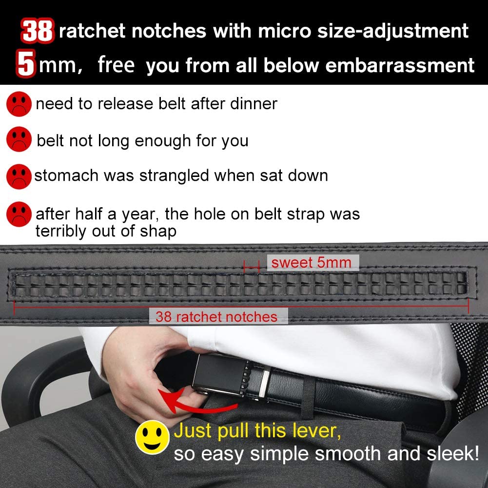 Men's Belt Ratchet Leather Dress Belt with Automatic Buckle 35mm Wide 27"-40"