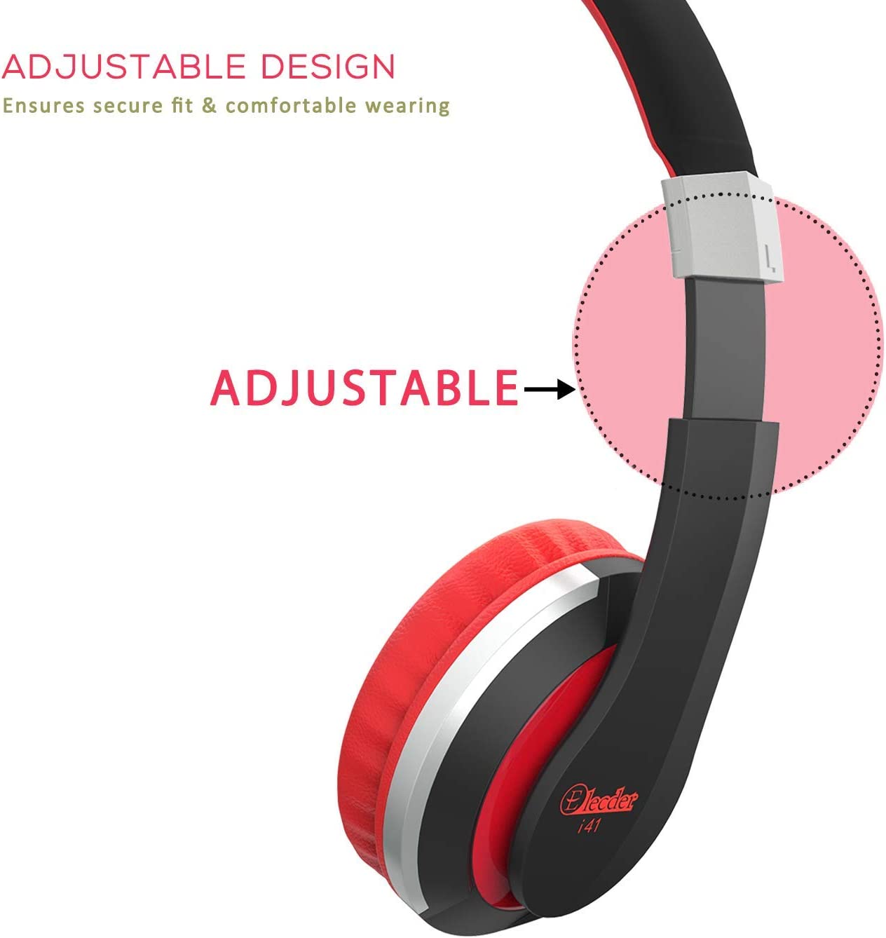 ELECDER i41 Kids Headphones, Headphones for Kids Children Girls Boys Teens Foldable Adjustable On Ear Headphones with 3.5mm Jack for Cellphones Computer MP3/4 Kindle School(Red/Black)