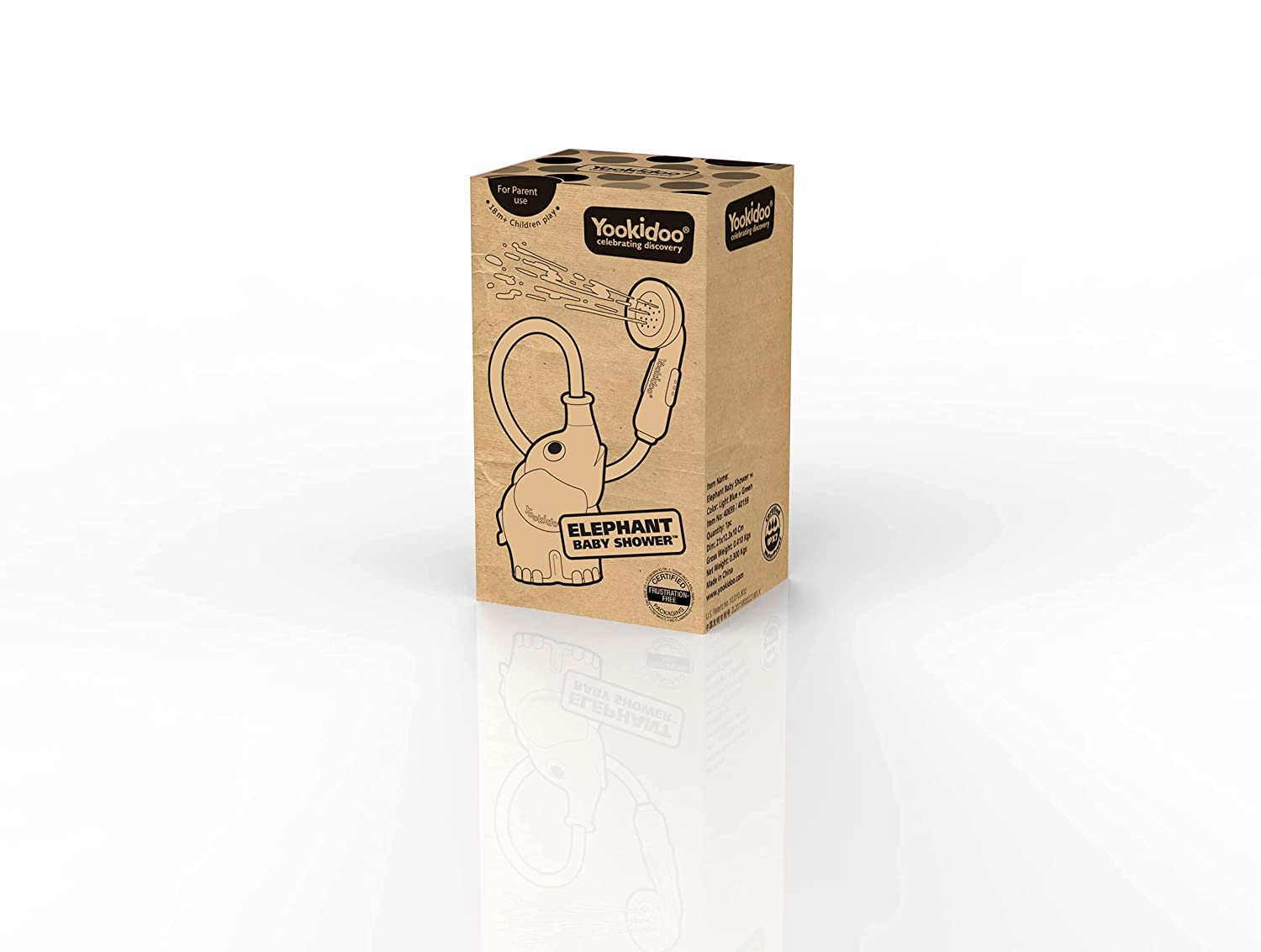 Yookidoo Baby Bath Shower Head - Elephant Water Pump with Trunk Spout Rinser - Control Water Flow from 2 Elephant Trunk Knobs for Maximum Fun in Tub or Sink for Newborn Babies (Blue)