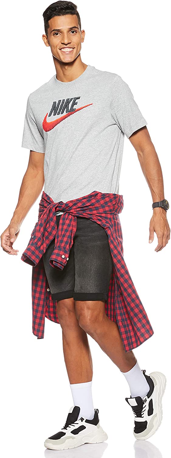 - NIKE SHIRT: Nike shirts for men have a standard fit for a relaxed, easy feel during physical activity. Large Nike swoosh trademark printed on chest.