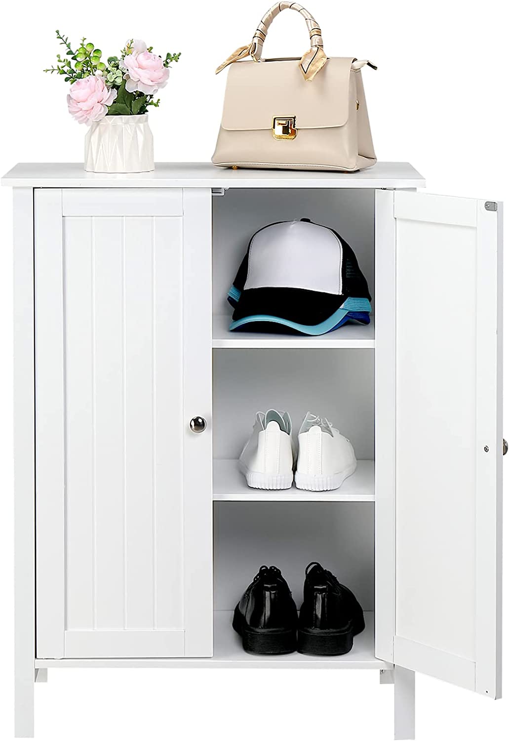 【Selected Material】--This standing cabinets with doors is constructed of durable upgraded P2 MDF( Medium Density Fiberboards) prevents moisture & water-resistant wooden material is suitable for humid environment, to keep your items and for long-term use