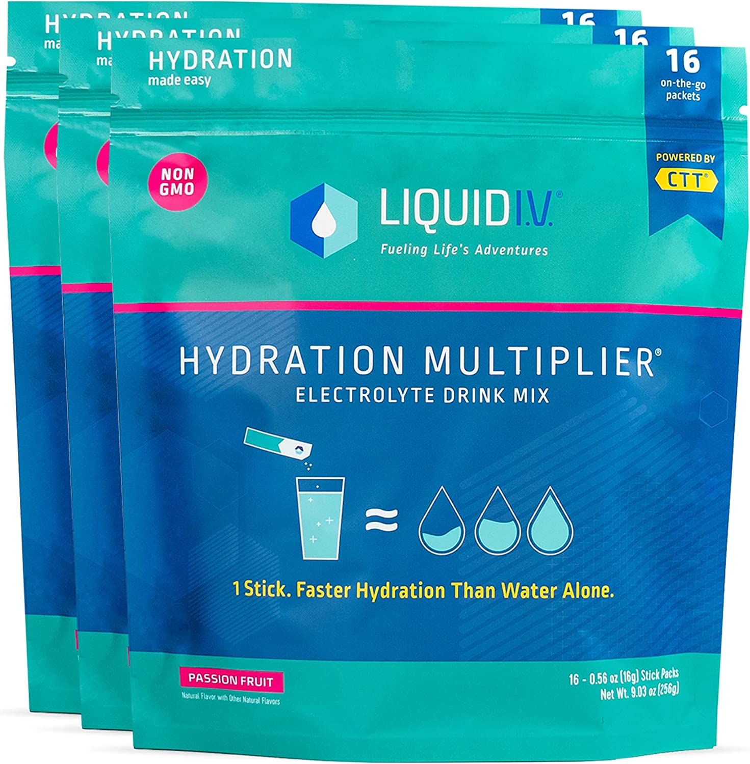 Liquid I.V. Hydration Multiplier – Hydrate 2x faster than water alone with Hydration Multiplier, a great-tasting electrolyte drink powder with five essential vitamins and 3x the electrolytes of traditional sports drinks. Whether you’re in need of hydration for exercise, travel, or long nights, Liquid I.V. Hydration Multiplier packets have you covered.