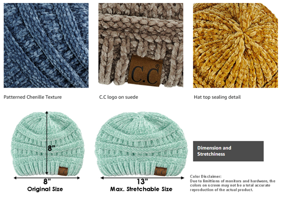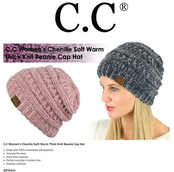 C.C Women's Chenille Soft Warm Thick Knit Beanie Cap Hat