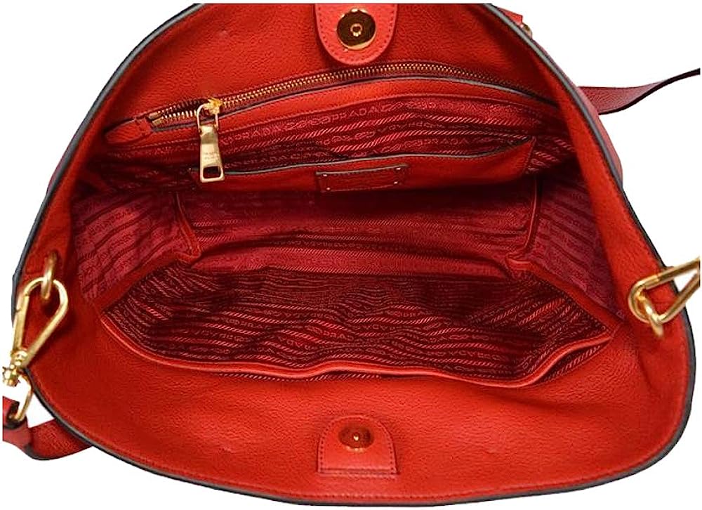 Prada Women's Red Vitello Phenix Leather Shopping Tote Handbag 1BG865