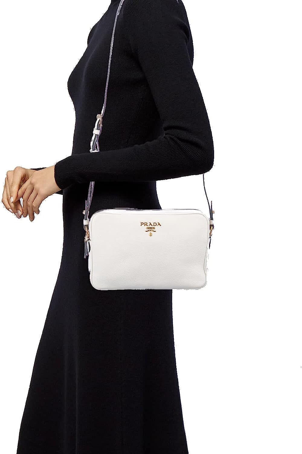 Prada Women's White Vitello Phenix Leather Crossbody HandBag 1BH079