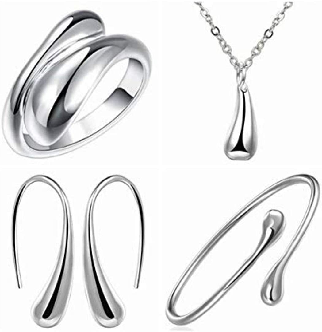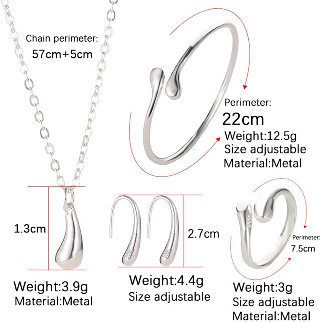 4PCS 925 Sterling Silver Jewelry Set for Women Teardrop Pendant Necklace Earrings Bracelet Ring Fit with Party Meeting Dating Wedding Daily Birthday Gift
