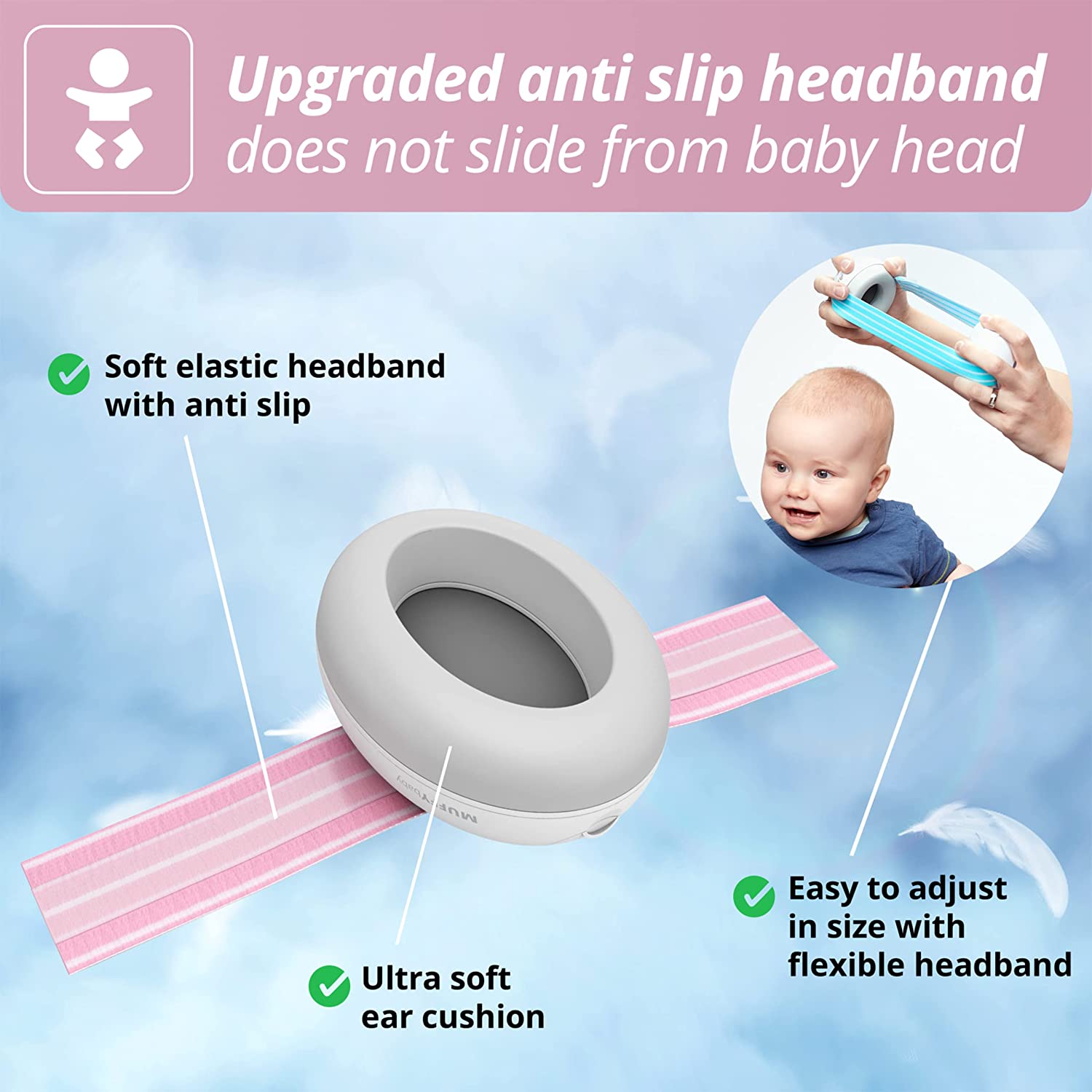 NO PRESSURE ON FONTANEL | The head of a baby younger than 18 months is extremely vulnerable because of the not yet closed fontanelle. The Muffy Baby is a better choice thanks to its specially designed soft headband. It fits smoothly and without adding any pressure.