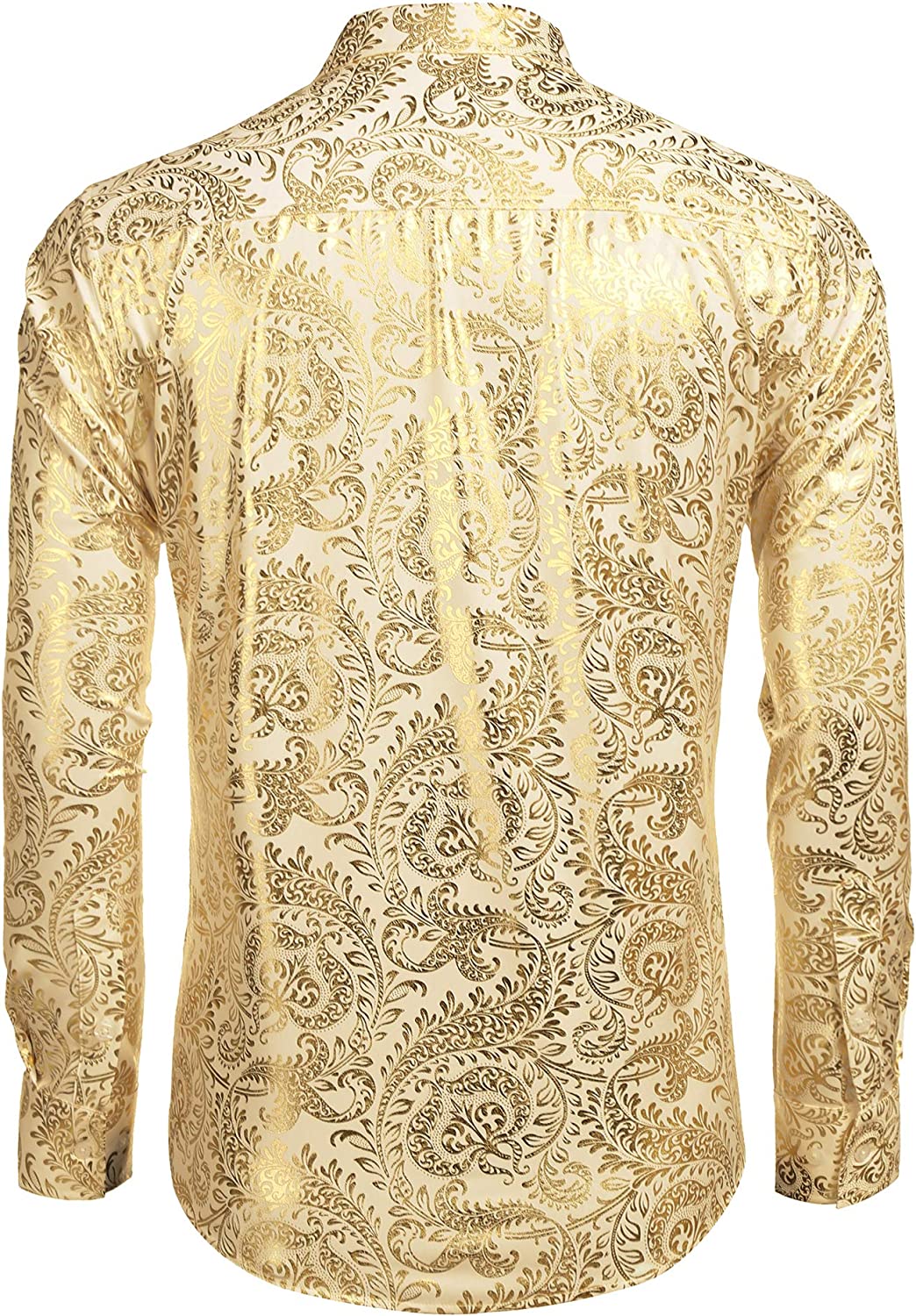- Elegant Gold Floral Printed Dress Shirts: Crafted from hand selected material, this long sleeve shirt has been elaborately tailored for a comfortable regular fit. Clean and understated designs give an instant touch of effortless cool.