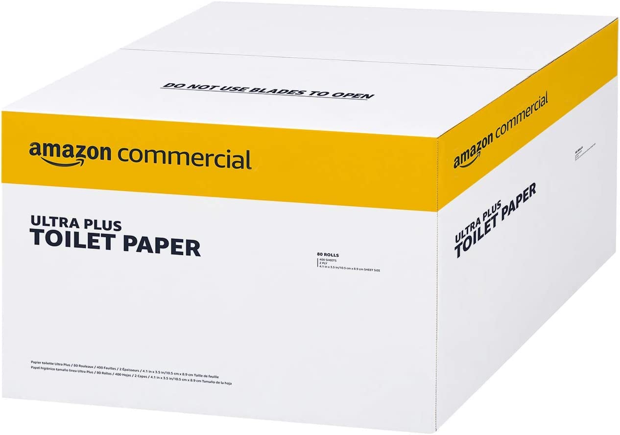 AmazonCommercial 2-Ply White Ultra Plus Individually Wrapped Toilet Paper/Bath Tissue|Bulk|Septic Safe|FSC Certified|400 Sheets per Roll (4.1" x 3.5" Sheet, 80 Count (Pack of 1)