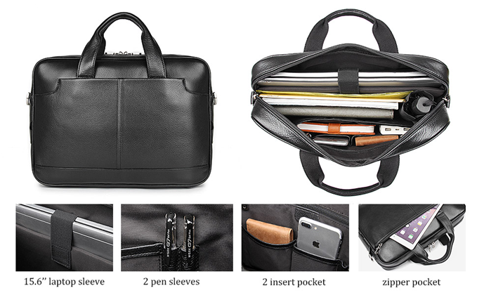 This beautiful briefcases is with enough large space, which can carry what you want, all accessories are arranged in order. Whatever it's for your daily use or business travel, you always feel convenient. Important is the classic black leather fit for everybody, any occasion, whoever you're young man or taste old man, it's worth for you to own.