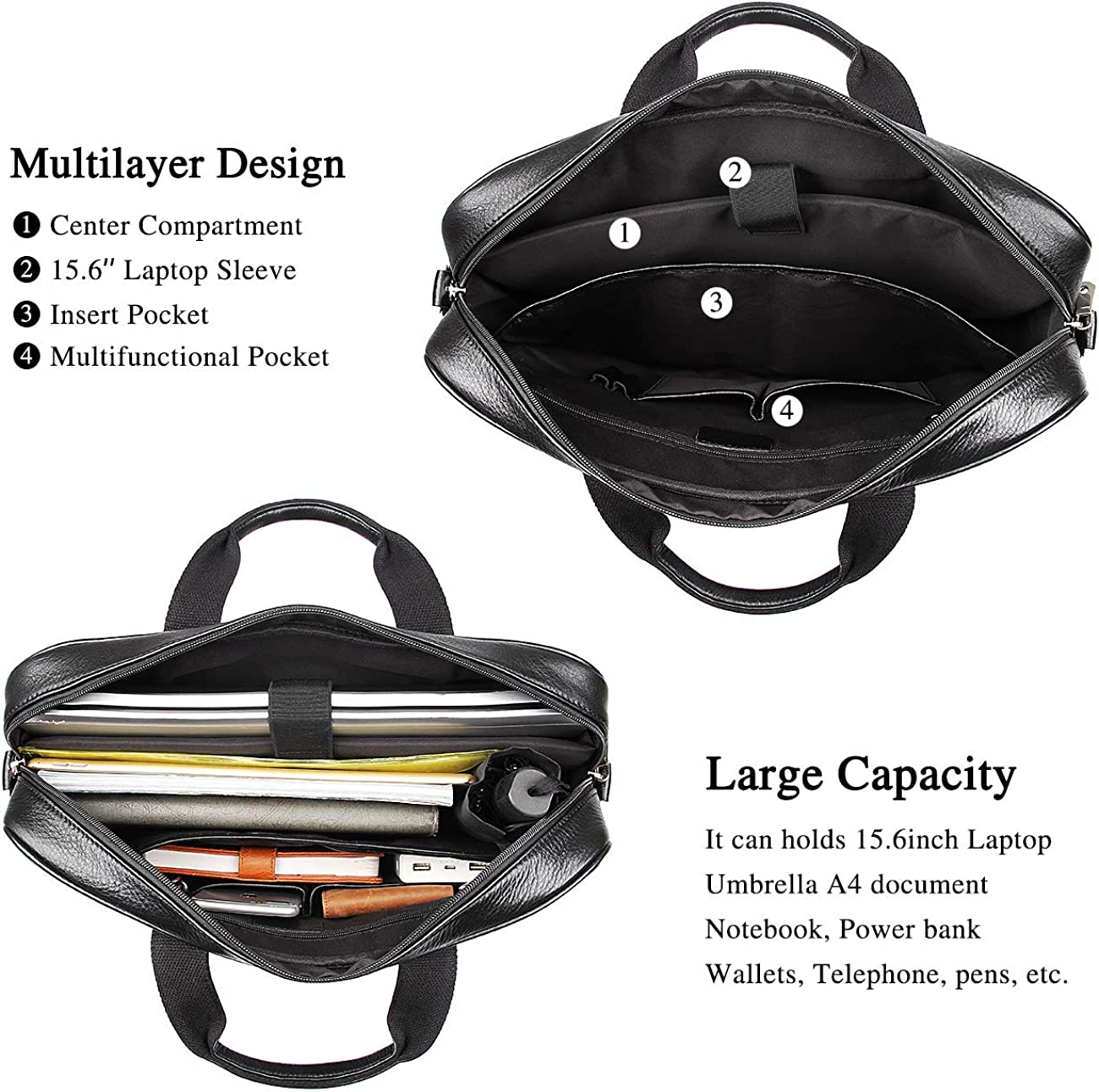 - Laptop padding:The laptop padding fits 14-15.6 inch laptop. Other compartment fits 16 inch Laptop. The bag with large capacity,front,back and interior pockets organization for all your business needs.