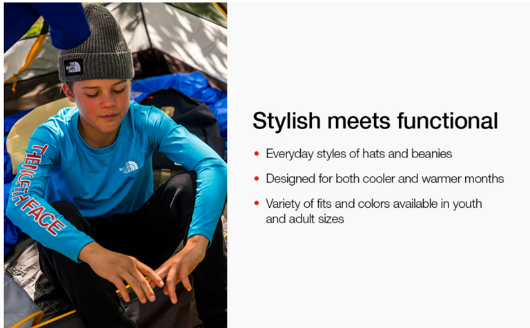 • TAKE ON THE DAY. An essential closet staple, this beanie is a go-to classic for hiking, camping or just kicking back. Pair it with your favorite jacket, parka, hoodie or pullover and proudly wear the badge of exploration with The North Face.