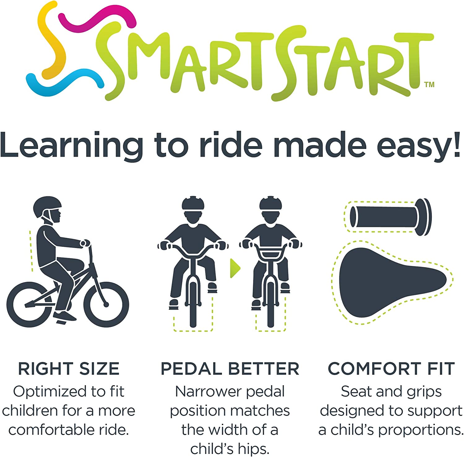 A great choice for teaching your youngster how to ride a bike, the 16" Scorch sidewalk bike from Schwinn features a grown-up look that's great for showing off around the neighborhood. It's outfitted with an enclosed chain guard to help prevent snags and dirty pant cuffs. The rear coaster-style brake makes stopping a breeze for new cyclists, and the Scorch also includes a front caliper brake which allows the child to learn how to use a handbrake safely. We've included training wheels for stability while your little one learns the invaluable skill of bike riding, and a tool-free adjustable seat post that lets your child grow with the bike. And we're only just getting to the best part. The Scorch features all new Schwinn SmartStart geometry, which means that the bike has been carefully designed to match a kid's body type to create a more comfortable, ideal riding position. This includes a lighter bike frame for added control, smaller grip handles to match smaller hands, a more narrow pedal position to match narrow kid hips and much more! Other kids bikes are just shrunken down version of adult bikes, so typically the grips are too large, the pedals are to wide and the seats are too large. Combine the great riding experience with the Schwinn limited lifetime warranty (for as long as you own the bike), and the Scorch is a parent and child favorite. You probably learned how to ride on a Schwinn all those years ago. Now it's time your child does too.
