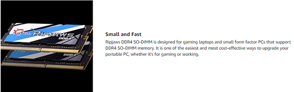 G.Skill Ripjaws SO-DIMM Series 16GB (2 x8 GB) 260-Pin PC4-21300 DDR4 2666 CL19-19-19-43 1.20V Dual Channel Laptop Memory Model F4-2666C19D-16GRS